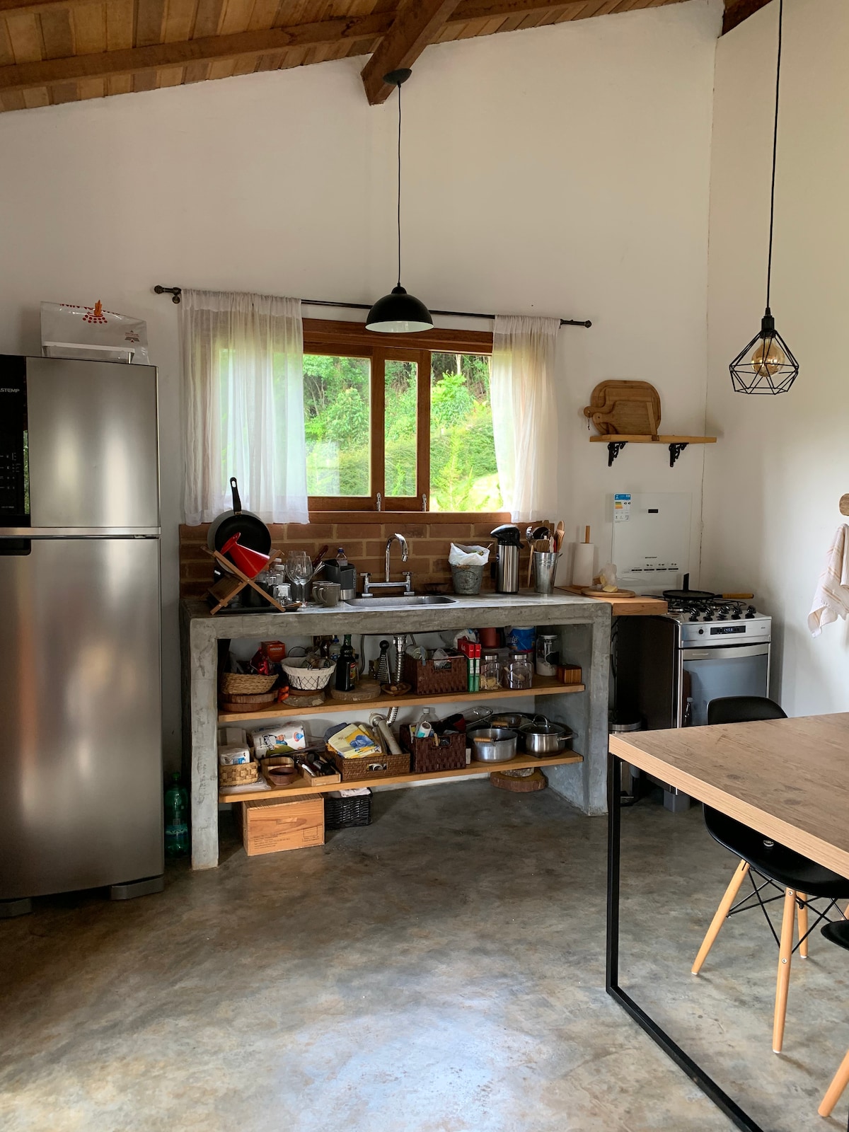 Olvídate de tus preocupaciones en este lugar espacioso y tranquilo. Excelente casa con ambiente único y clima agradable Acepto a más personas en la casa, siempre que se organicen por su cuenta. 1 habitación y 1 suite con baño 1 baño social 1 sala con chimenea Baño: con ducha de gas y otro con ducha eléctrica Cocina completa (cocina, nevera, utensilios) Ambiente exterior con zona verde Plazas de aparcamiento Nota: mascotas a combinar Más de 5 huéspedes, combinar por mensaje