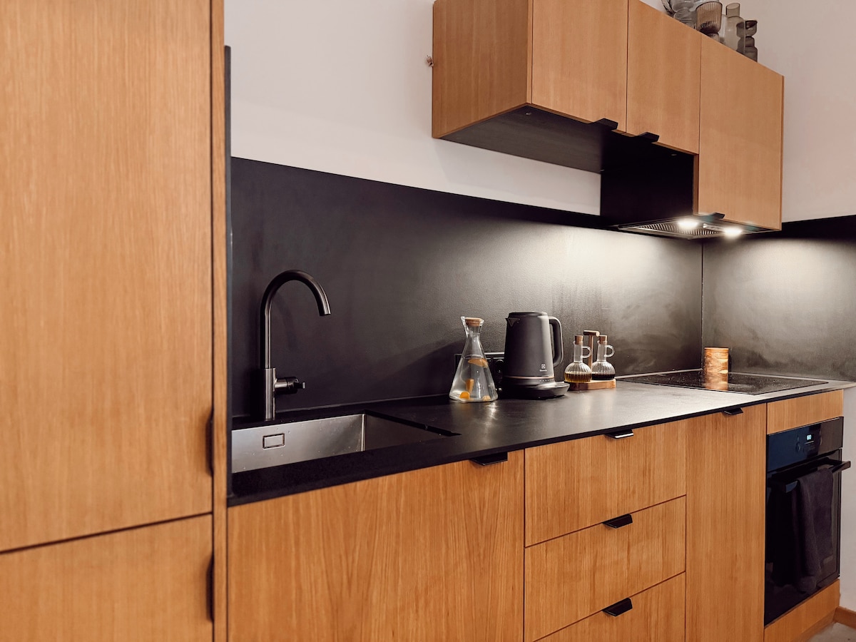 Encantador apartamento tipo estudio en edificio de madera, construido en 1856 y ubicado en un pueblo muy antiguo. Este espacio de 37 metros cuadrados cuenta con una cocina americana equipada de estilo años 60, una cama tamaño queen y un gran baño. El lugar está amueblado con muebles seleccionados de diferentes décadas.