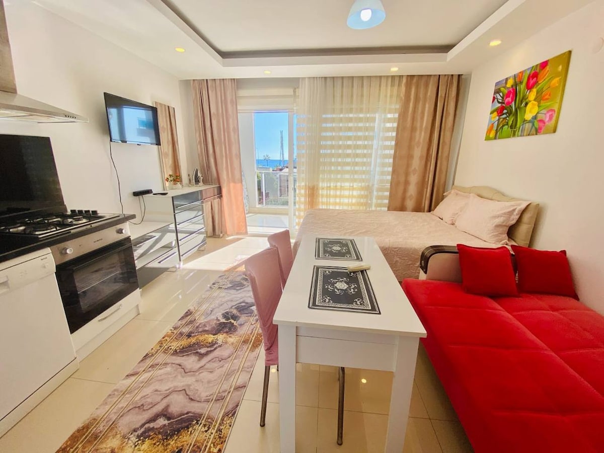 Ya sea que estés trabajando de forma remota o disfrutando de tu tiempo libre, la impresionante vista de la montaña Cebel-i Reis te inspirará y te dará una sensación de tranquilidad. Este acogedor apartamento de 1 dormitorio tiene una ubicación céntrica, a pocos pasos de la playa, por lo que es un refugio ideal para parejas o personas que viajan solas. Ofrece todos los servicios esenciales para una estancia cómoda y agradable, incluido un espacio de trabajo dedicado con una silla cómoda.