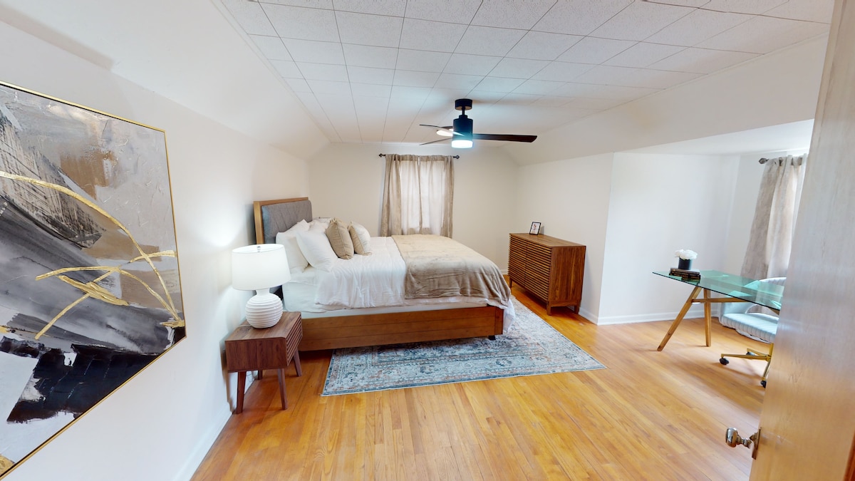 Estarás cerca de todo, convenientemente ubicado a 1 cuadra de la calle principal, lo que facilita la planificación de tu visita. Nuestra casa inteligente cuenta con un plano de planta abierta desde el rincón comedor y la barra de café con una Kuerig, a través de la cocina hasta la sala de estar con televisores Roku y cómodas camas tamaño queen en cada habitación, wifi, lavadora/secadora, zona vallada privada con parrilla y chimenea: el Roadrunner está totalmente equipado con todas las comodidades del hogar para tu estancia. Sensación de privacidad en una casa céntrica.