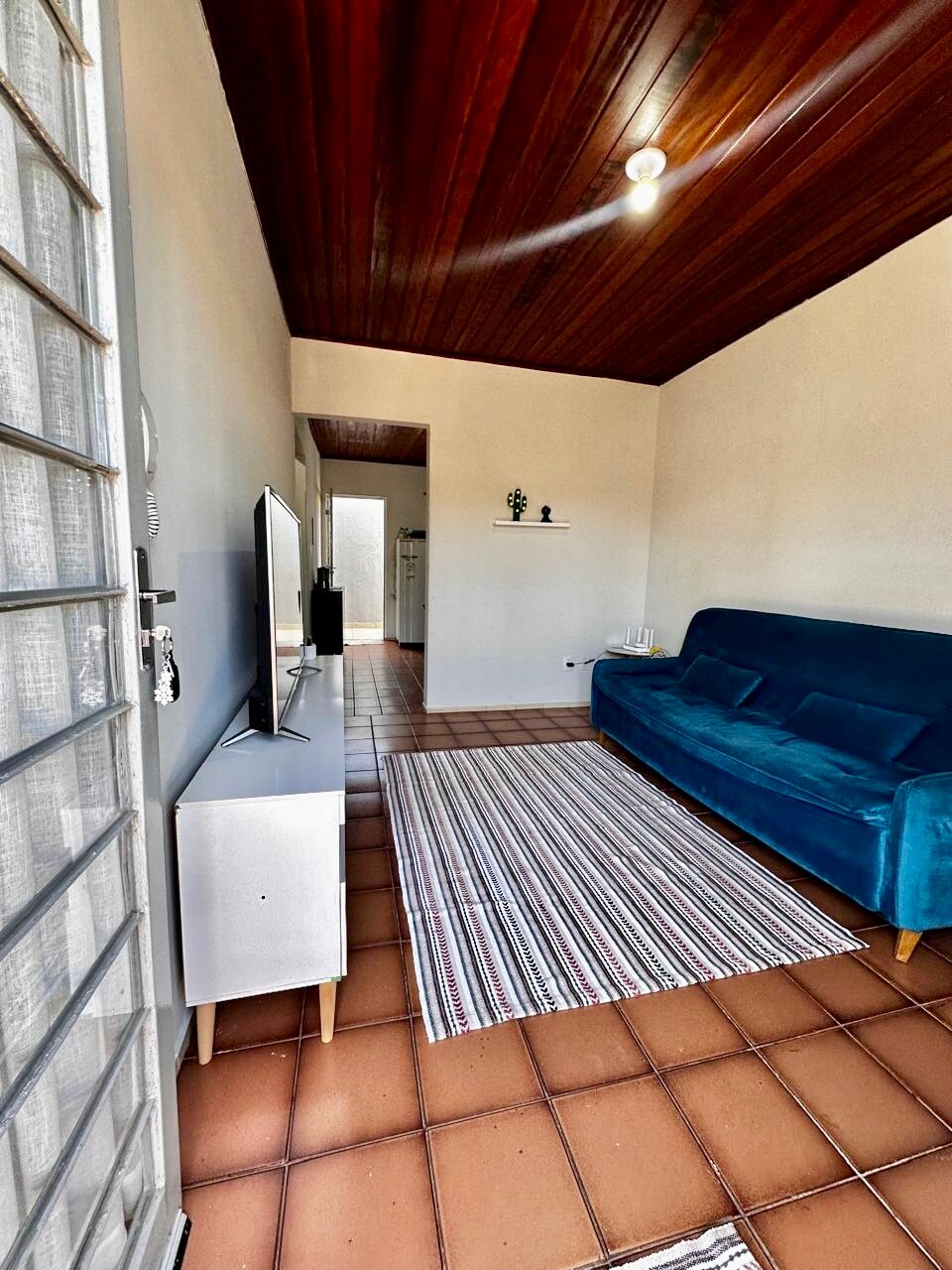 Situado en una zona tranquila, a 2,5 km del centro comercial China, con farmacias y supermercado. Ofrece artículos de cama, mesa y baño. Dispone de internet, aire acondicionado frío/calor en las habitaciones, lavadora, puerta electrónica con garaje cubierto, TV43" con canales cerrados. La cocina está completa, con utensilios como ollas de acero inoxidable, microondas, sandwichera, cafetera, licuadora, etc. Ubicación: Rua Adalberto Fróes, 174 Casa 2, Bairro Altos da Glória -Ponta Porã - MS.