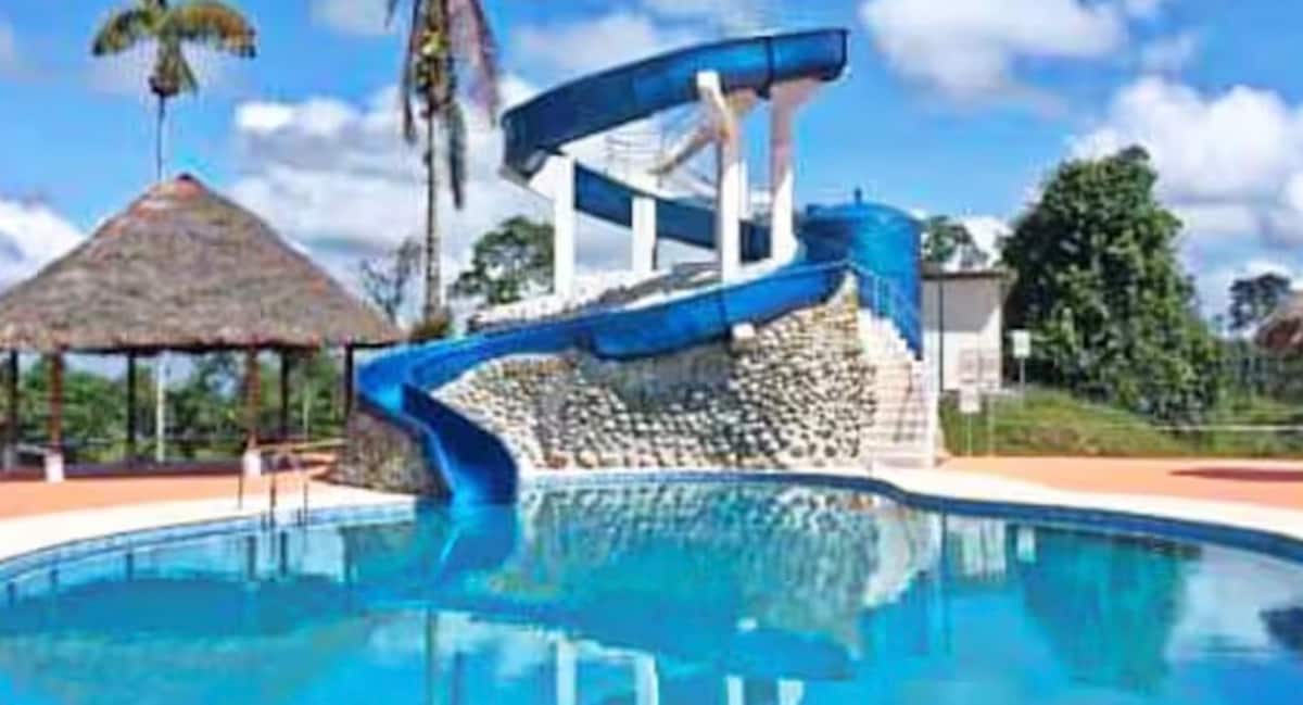 Relájate con toda la familia en este tranquilo lugar en medio de la naturaleza, con clima cálido y maravillosas áreas comunales, el lugar perfecto para descansar del ruido de la ciudad. Ubicada en una zona con clima tropical húmedo cuya temperatura fluctúa entre los 21 a 30 grados centígrados, es un lugar ideal para avistamiento de aves y de otra fauna como anfibios, insectos, etc. NOTA: la cocina y ducha son eléctricas por lo que debido a los cortes de energía podrían no estar disponibles.