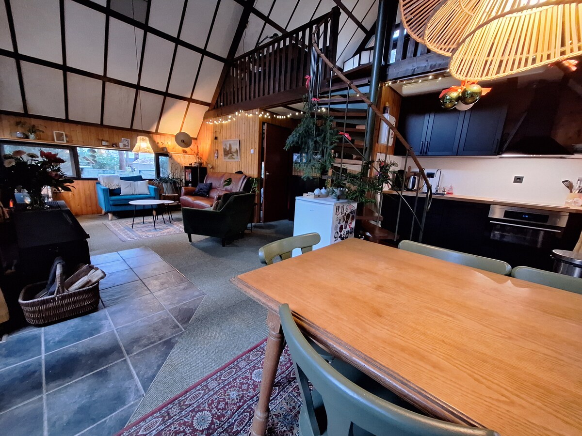 ¡Lujo natural en los bosques holandeses! Cabin George es una acogedora cabaña en el bosque completamente renovada en una parcela de 700 m2 donde puedes retirarte y que está equipada con todas las comodidades. Relájate en el maravilloso jacuzzi entre pájaros y ardillas, da un agradable paseo por el bosque adyacente o lee un buen libro junto a la hermosa estufa de leña en los meses de invierno. Cada temporada es especial. Cabin George es un buen punto de partida para realizar actividades en la región.