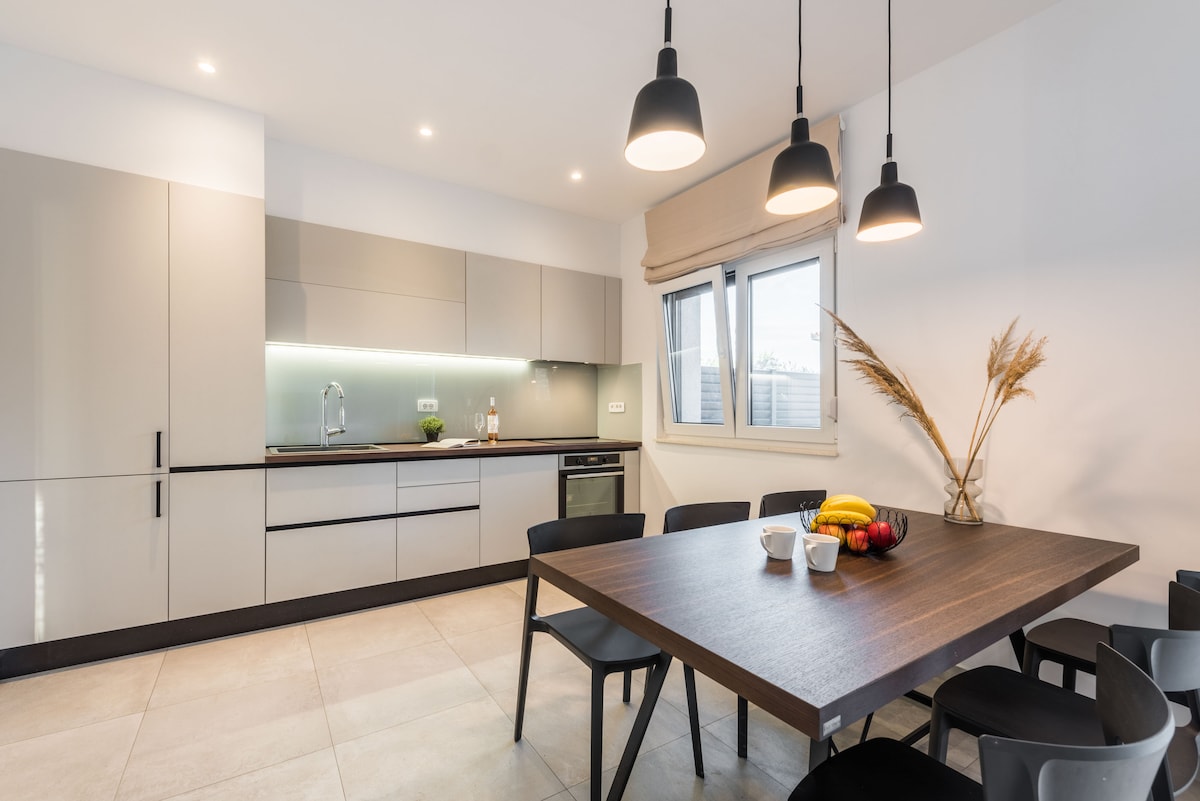 Bienvenido a nuestra casa de vacaciones de 3 dormitorios recién renovada, perfecta para familias o grupos de amigos. Situado cerca de muchas playas impresionantes en la bahía de Lapad y a pocos pasos del paseo marítimo, el apartamento cuenta con dos dormitorios tamaño queen, un dormitorio individual/queen, dos baños, una sala de estar abierta con una cocina a medida y servicios como aire acondicionado, TV e internet inalámbrico.