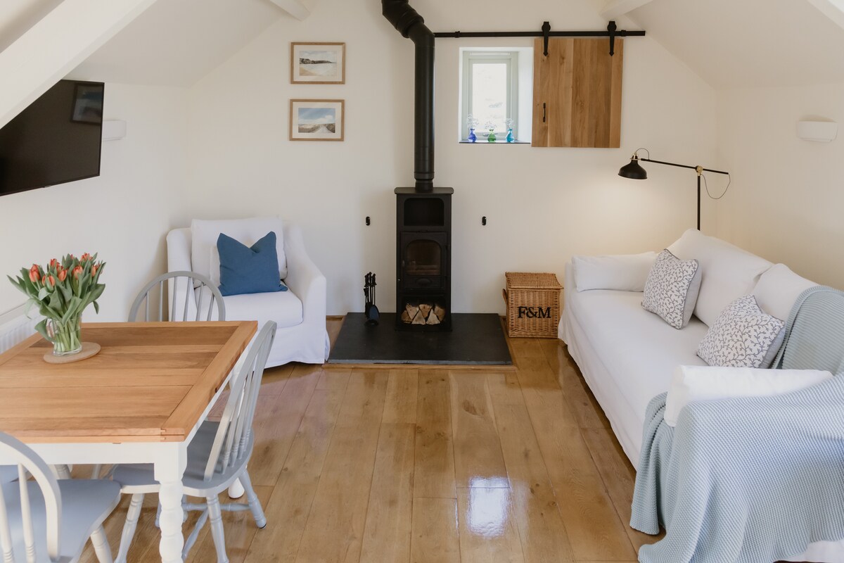 Square Island is a peaceful, rural location adjacent to a small farm with Pembroke town and several outstanding beaches just a short drive away. The Barn is a converted donkey stable, with traditional lime plaster walls and upcycled timber giving it a rustic feel. The courtyard is gated and secure for pets, perfect for drinks and BBQ in the summer. No children under 12 due to fire safety regs for the sleeping mezzanines. We may be able to accept same day bookings, please message to enquire.