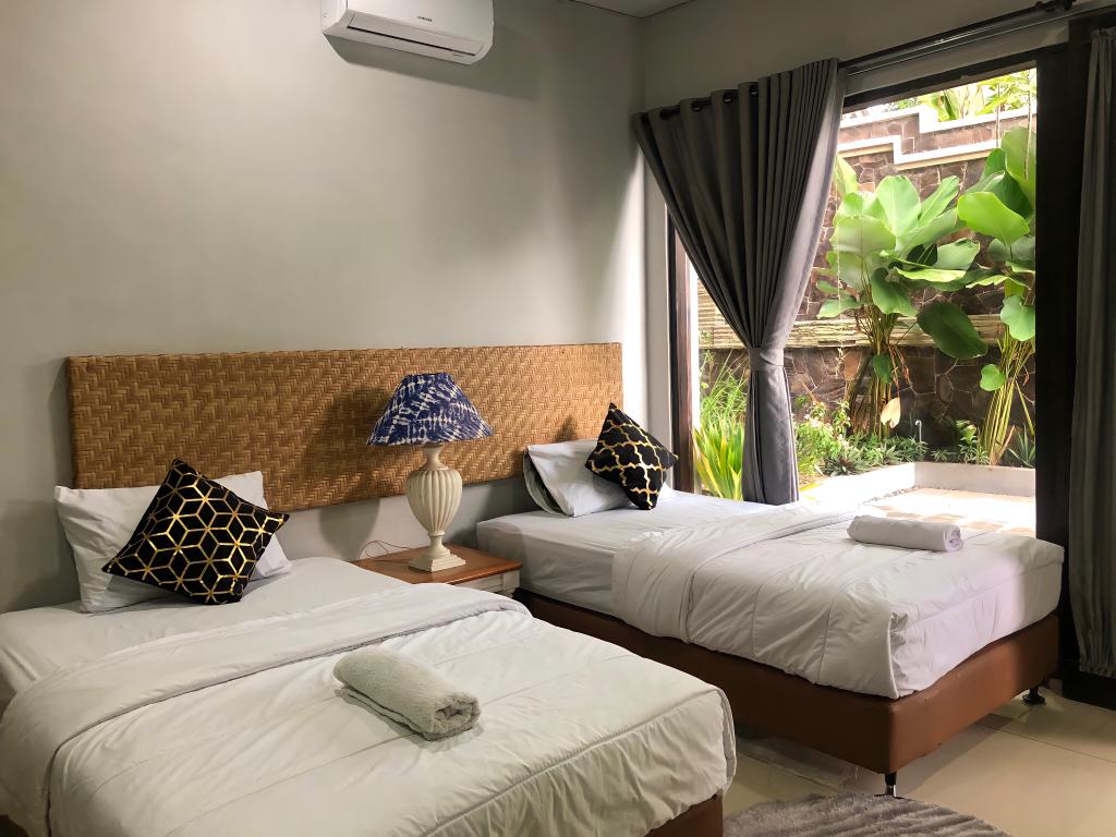 Escápate al paraíso en nuestra villa de dos dormitorios en Gili Air, perfecta para familias o grupos de amigos que buscan privacidad y comodidad. Cada dormitorio cuenta con un interior espacioso y bellamente diseñado con lujosa ropa de cama y decoración natural inspirada en el entorno tropical de la isla. La villa también incluye una sala de estar de planta abierta con cómodos asientos y una cocina totalmente equipada para tu comodidad. Experimenta la mezcla perfecta de encanto isleño en nuestra villa donde te esperan recuerdos inolvidables