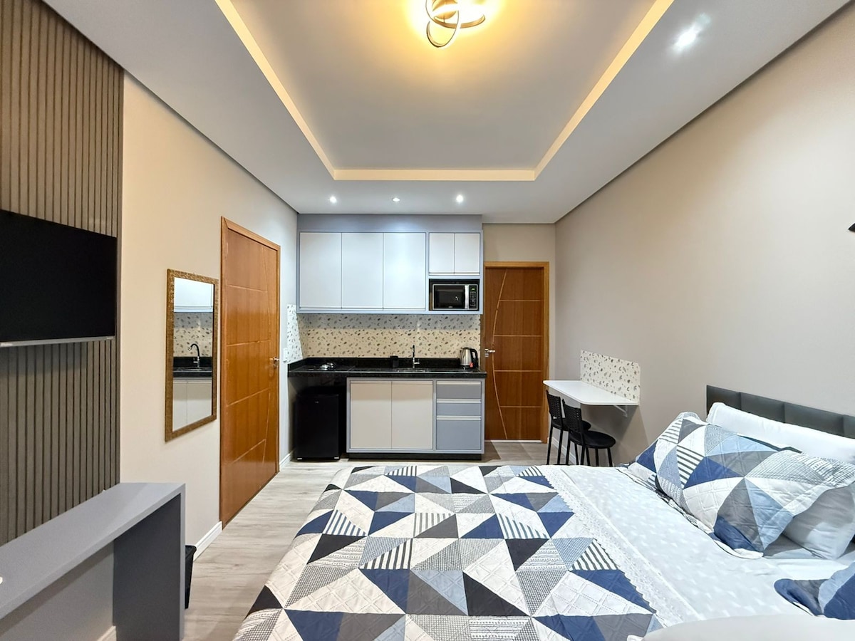 ¡Encantador estudio con piscina en el corazón de la ciudad! Ya pensé en alojarme en un lugar acogedor y funcional. ¡Este estudio para un máximo de 2 personas tiene todo lo que necesitas con un costo-beneficio increíble! Compacto, cómodo y súper bien equipado: cama acogedora, cocina funcional, wifi rápido y aire acondicionado. Ubicación estratégica: en el centro, cerca de cafeterías, restaurantes, comercio y transporte. ¡Todo esto por un precio que cabe en tu bolsillo! ¡Reserva ahora!