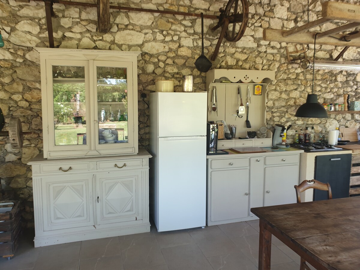 Pequeña casa de 20 m², en pleno campo. Restaurada con cuidado, incluye una sala de estar equipada con un sofá cama de 2 plazas, una cocina americana y un baño cálido tipo chalet. Dispone de una estufa de leña. Cuenta con una zona sombreada equipada con una barbacoa y muebles de jardín y un espacio que se abre a un amplio paisaje campestre. Un arroyo que recorre la pradera, rutas de senderismo y el pueblo medieval cercano invitan a dar un paseo.