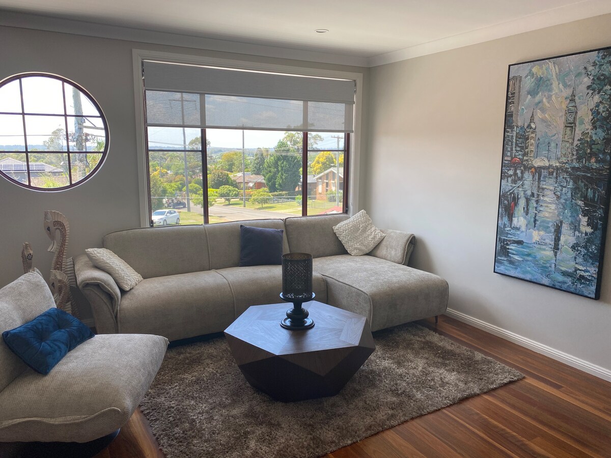 Jen y Wayne le dan la bienvenida a la vista del atardecer, una hermosa propiedad de 1800 metros cuadrados ubicada en las pintorescas montañas azules inferiores. Tienes un alojamiento privado con el uso de una terraza trasera protegida para Relájate en el jacuzzi Barbacoa disponible para usar. Disfrutarás de la tranquilidad del enorme jardín japonés con estanque y carpa koi con vistas a la montaña. La sala de estar está equipada con aire acondicionado y calentador de gas y ventilador de techo en el dormitorio. Esta casa es muy privada y ultra tranquila y muy relajante.
