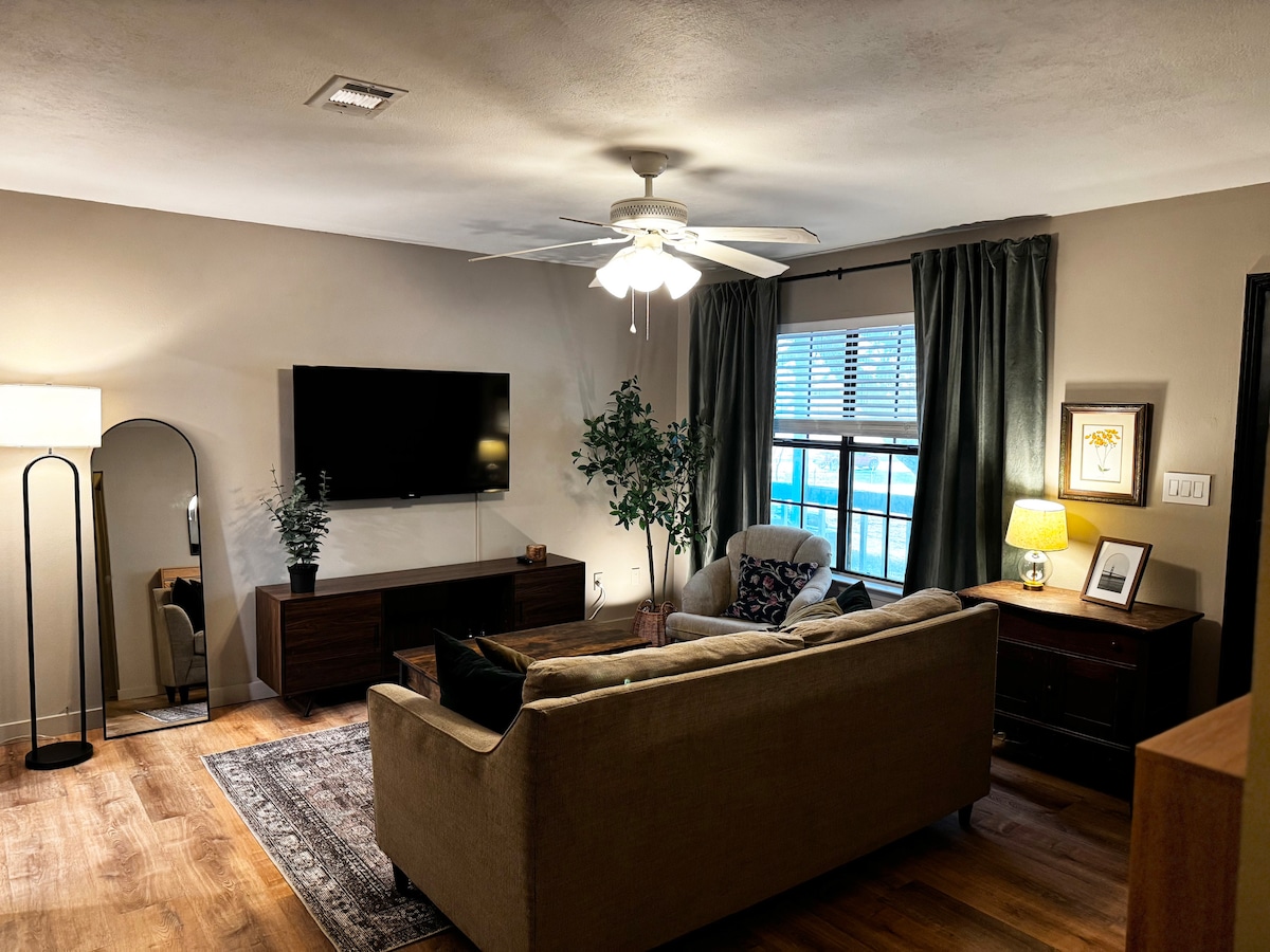 Bienvenido a un lugar al que querrás volver una y otra vez. ¡Recién reformado, con todas las comodidades! ¡A pocos pasos de un bar Tiki y de una enorme piscina/bañera de hidromasaje al aire libre! ¡Música en directo casi todas las noches! ¡Aparcamiento justo enfrente! Johnson y Orange Beach están a pocos minutos. ¡Nuestro objetivo es asegurarnos de que lo pases lo mejor posible! Te mereces un descanso. El sofá se convierte en una cama tamaño queen. Disfruta de cocina completa, ducha grande, gimnasio, piscina cubierta y al aire libre y, si crees que falta algo, ¡avísanos!