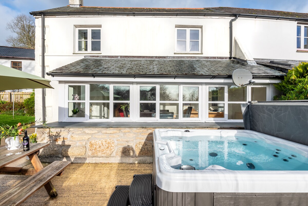 Retiro de lujo de estilo escandinavo escondido en una hermosa casa de campo de Cornualles a solo dos minutos a pie de la playa y el puerto. Relájate en una cama tamaño king con dosel, con el galardonado colchón Emma antes de pasar las horas en la profunda bañera de piedra Lusso. Acurrúcate en el gran sofá de terciopelo frente a la estufa de leña después de cocinar una deliciosa comida en la cocina de roble a medida. Otros aspectos destacados incluyen un patio aislado, banda ancha de fibra y un baño de diseño con ducha.