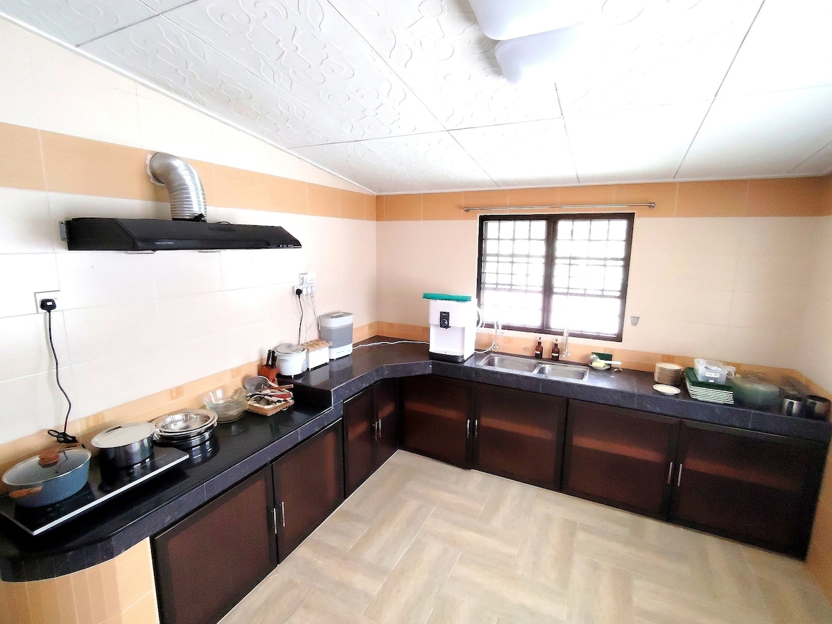 ¿Planeas un viaje a Ipoh y buscas alojamiento en casa de familia? Considera nuestro agradable entorno y alojamiento a un precio razonable. Se encuentra en Pasir Pinji, que está en el corazón de Ipoh y con fácil acceso a lugares de interés y famosos manjares locales. La casa de 5 dormitorios cuenta con 3 camas tamaño queen, 3 camas tamaño king y 5 colchones más sin cargo. Cada dormitorio cuenta con un baño privado. (Feriados públicos y escolares, el fin de semana tiene un precio diferente)