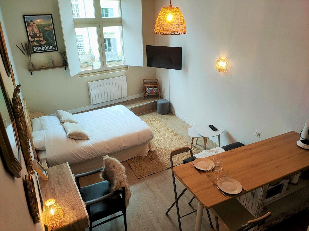 Studio de charme cosy au cœur de Périgueux, dans le secteur historique de la ville. Télévision Connectée - Wifi dans l'appartement Grand Parking de ville à proximité. Rue calme, quartier paisible. En semaine nous proposons une arrivée à partir de 18h00 pour des raisons d'organisation du ménage à faire, mais n'hésitez pas à nous contacter pour vous remettre les clés plus tôt que nous ferons avec plaisir dans la mesure du possible.