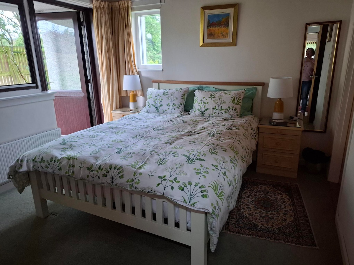 At Cnoc Sualtach (Knock-salt-ash), we offer a cosy en suite double room with a king-sized bed. Each morning, we serve a hearty breakfast made with local ingredients in our inviting dining room. Guests can unwind in the lounge, read, enjoy music, or sit by the wood burner. Our home is warm, inclusive, and welcoming, with deep respect for people and nature. We’re just a short walk from the village centre, its friendly shop, scenic paths, and the Cateran Trail and nearby beautiful spots to explore.