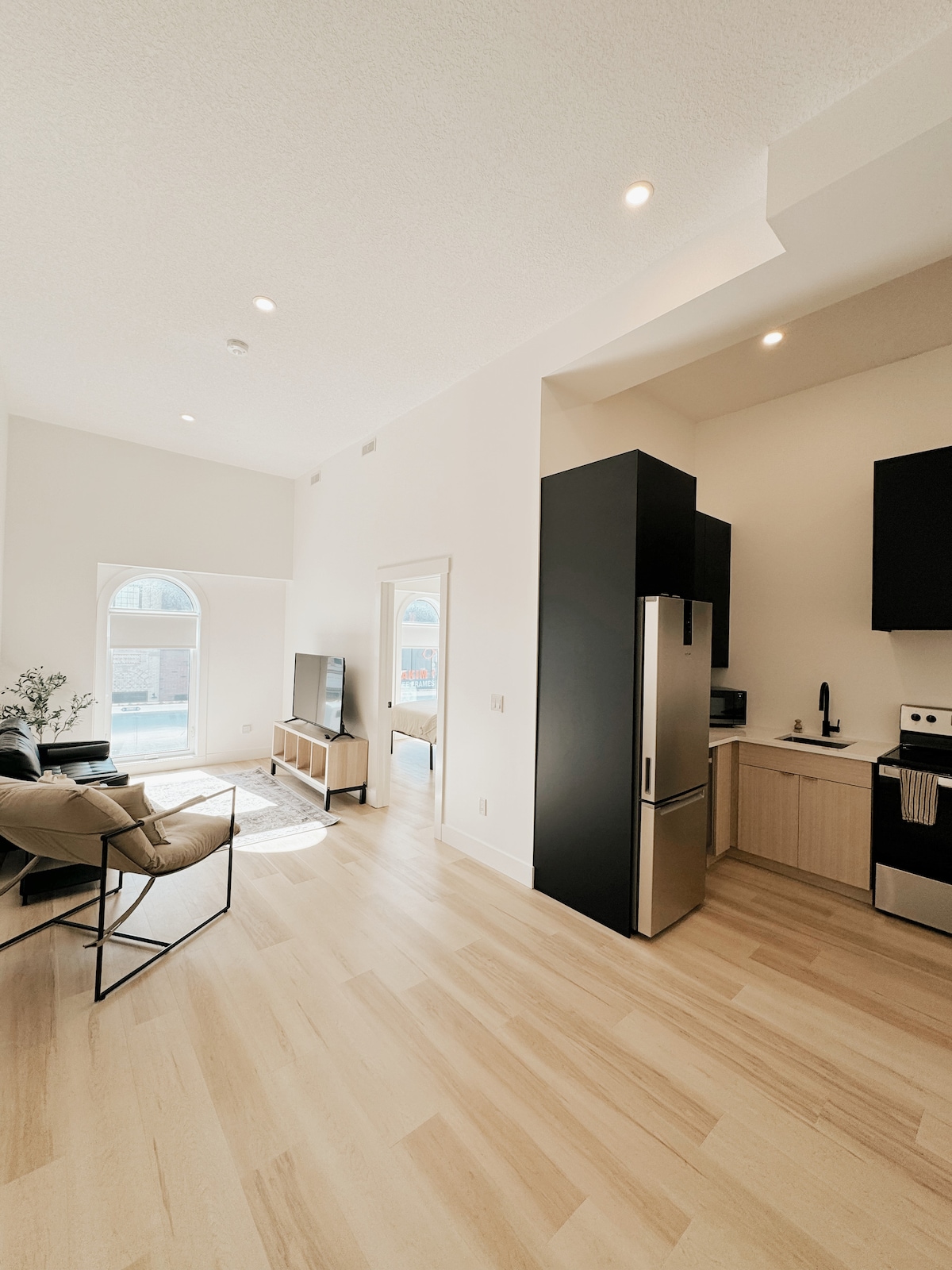 Loft Marrakech: encanto exótico en los lofts Bradshaw de Stratford. Descubre el Marrakech, un impresionante loft de 2 dormitorios que combina el encanto histórico de la arquitectura de 1902 con la vibrante esencia del Magreb del Viejo Mundo. Disfruta de ladrillos vistos, acabados modernos y arte original. Totalmente equipado con una cocina y un lavadero, se encuentra en el corazón del centro de la ciudad, a pocos pasos de los teatros del Festival de Stratford, tiendas y el lago Victoria.