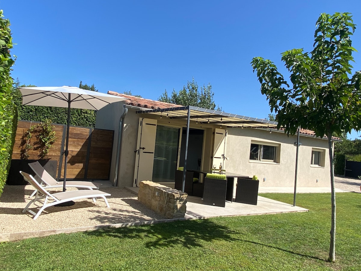 Superbe petite villa de 53 mètres carré, avec 2 chambres, une salle de bain et cuisine ouverte. Profitez de la vue paradisiaque sur le jardin, de la terrasse privée de 25 mètres carré avec pergola et voile d’ombrage, et du chant des cigales, des oiseaux et parfois de la grenouille du bassin ! La maison est indépendante du Mas, sans aucun vis à vis. Terrain de pétanque, grand parking. Aménagement neuf par une architecte d'intérieur. Tranquillité et sérénité assurés :)