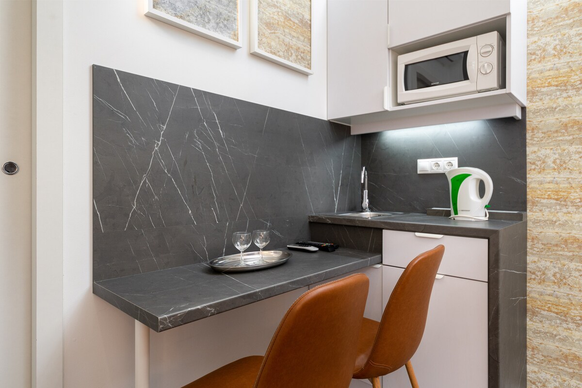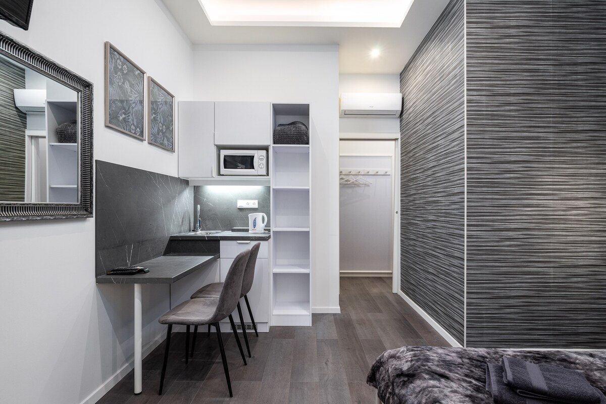 Nuestros modernos estudios de alta gama están ubicados en el corazón de la ciudad, justo en Oktogon, cerca de la avenida Andrássy y la calle Király. Todas las unidades son privadas, cada una con su propio baño. También están equipadas con cocina pequeña, wifi, TV LCD y aire acondicionado. El edificio de apartamentos tiene una recepción, pero no está disponible las 24 horas y está equipado con cámaras de circuito cerrado de televisión.