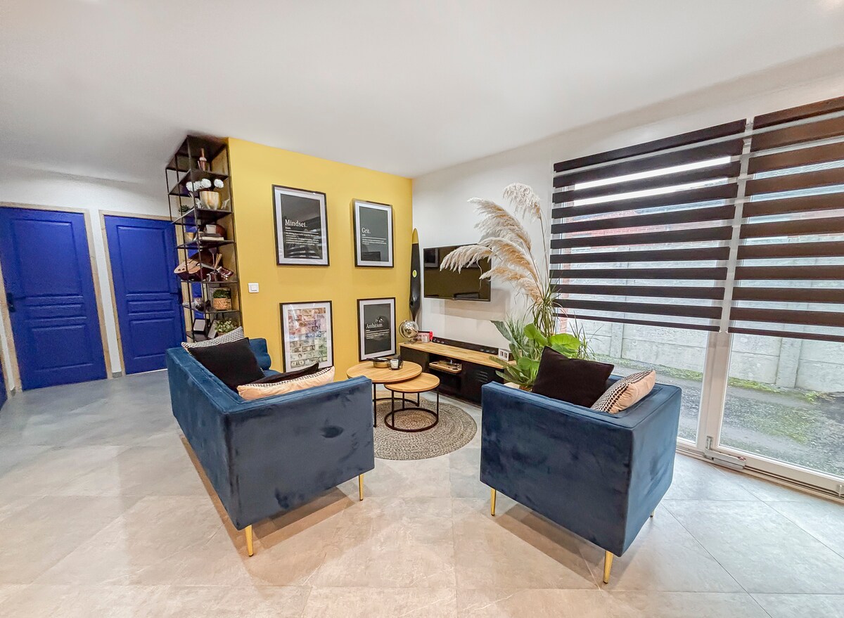 "Ven a descubrir nuestro departamento recién renovado de 64 m2 T3 en el centro de la ciudad de Valenciennes - 1er piso en una residencia segura - Espacios luminosos - Dormitorios de patio tranquilos con ropa de cama de 160x200cm y 140x190cm (sábanas incluidas) - Cocina totalmente equipada: horno, nevera, microondas, lavadora, cafetera Dolce Gusto. - Ducha italiana, calentador de toallas (toallas incluidas) - Internet de alta velocidad y televisión de fibra óptica. - Posibilidad previa solicitud: área de juegos para bebés, cuna, calentador de biberón "