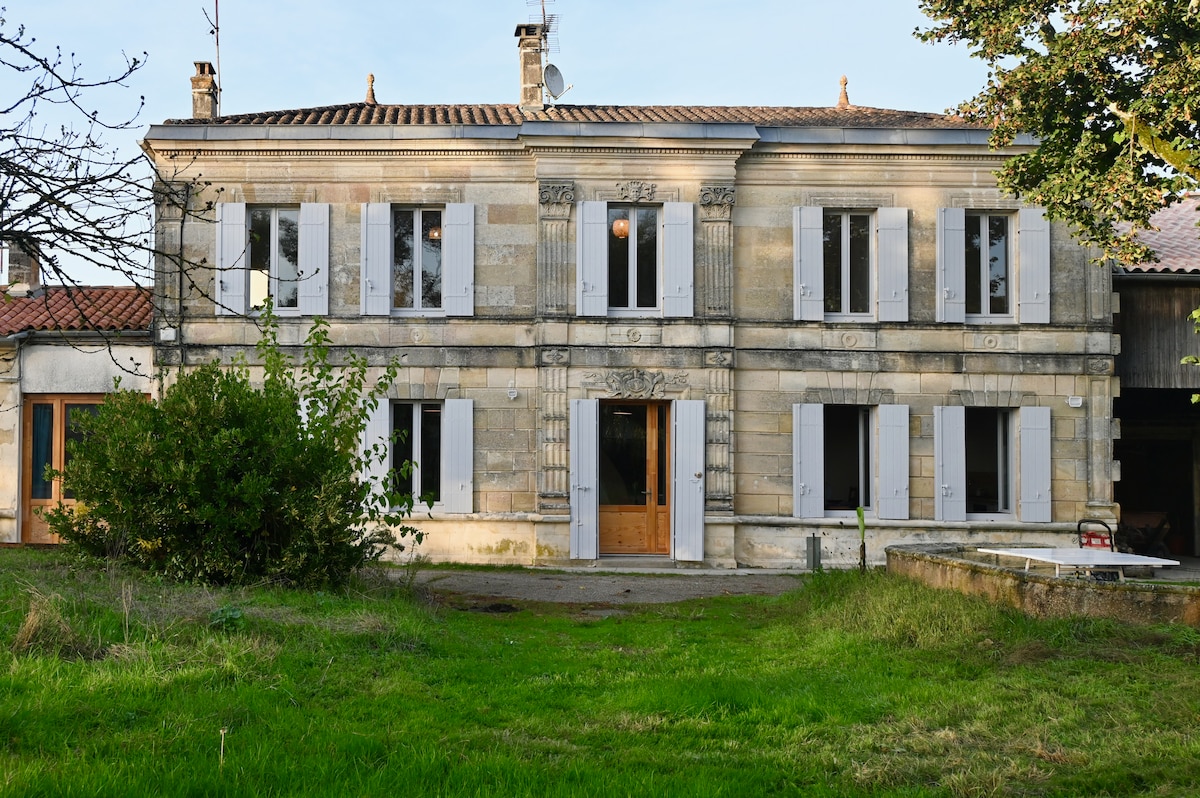 Casa reformada situada en el corazón de los viñedos de Burdeos, a 35 minutos de Burdeos, a 15 minutos de Libourne, a 20 minutos de Saint Emilion, a 40 minutos de la Ciudadela de Blaye y a aproximadamente 1h20 de las playas (Dune du Pilat, Arcachon). Capacidad para 4 personas, sala de estar con cocina equipada, dormitorio con cama doble y zona de oficina. Cuarto de baño contiguo a la habitación. Aseo separado. La casa tiene una gran terraza amueblada con plancha para disfrutar de las hermosas noches. Estación de tren a 15 minutos.