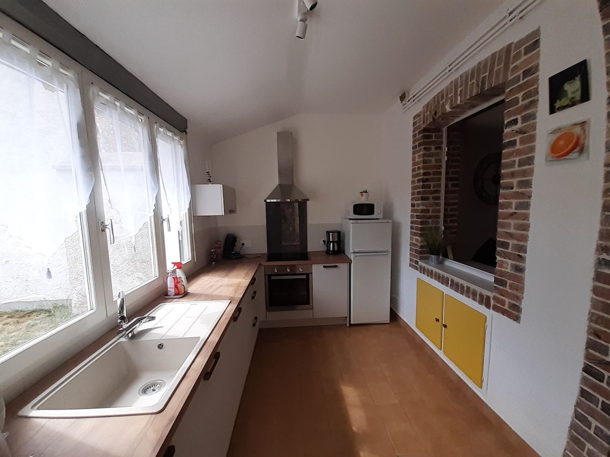 Bonita casa de entramado de madera, reformada de arriba abajo en 2010 con todas las comodidades, pero conservando toda su alma. Un lugar donde todo el mundo parece sentirse bien, con días de sol en el gran jardín orientado al sur, o cerca de la gran chimenea en invierno. 2 habitaciones acogedoras en el 1.º piso (1 con cama doble y 1 con 2 camas individuales), y abajo, después del gran salón/comedor de 50 m2, una pequeña oficina con 1 cama individual y una gran cocina equipada llena de luz. A pronto