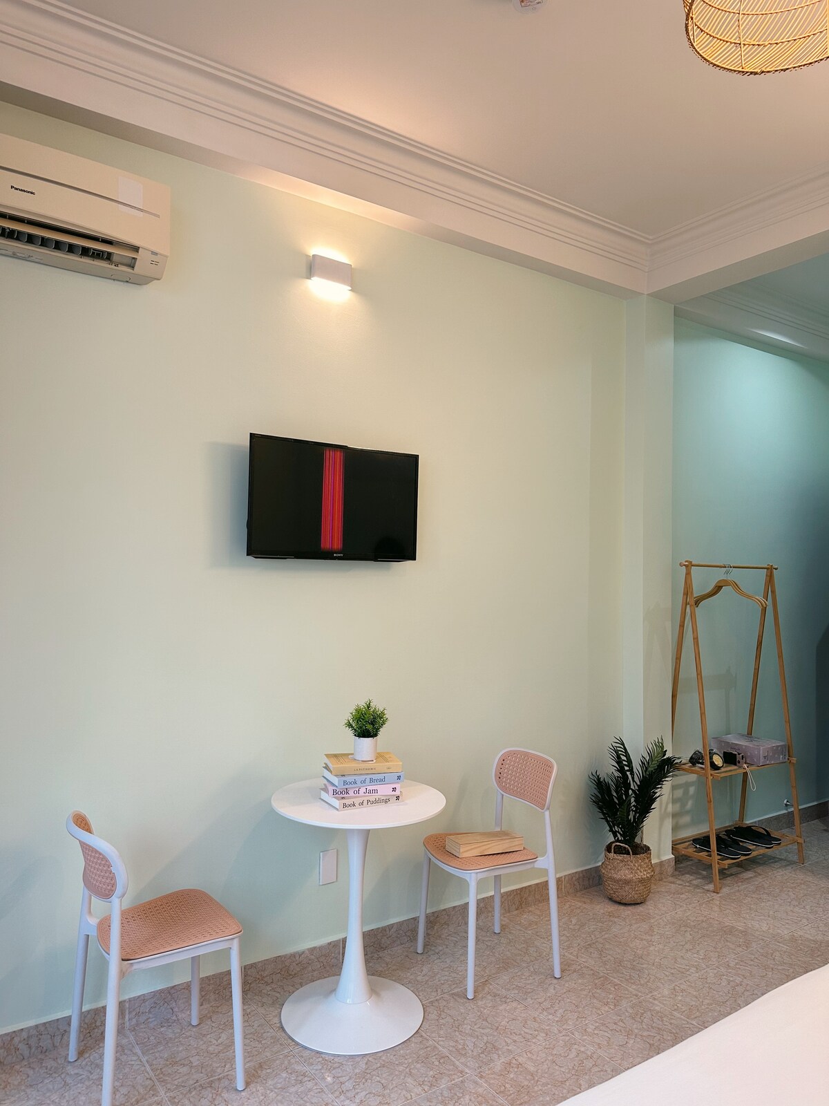 Establecidos en 2023, ofrecemos apartamentos con servicios de alta calidad para estancias cortas y largas ubicados justo en una calle concurrida con famosas cafeterías, restaurantes, Circle K y tiendas de comestibles cerca y a solo unos minutos a pie de la calle peatonal Bui Vien y del parque Tao Dan. Rentables en comparación con los hoteles, ofrecemos apartamentos de 1 dormitorio con servicios, privacidad, estilo moderno, cocina, balcón, puertas y ventanas insonorizadas, espacio de escritorio para trabajar, jardín en la azotea, ascensor, limpieza regular y las comodidades de un «hogar lejos del hogar».