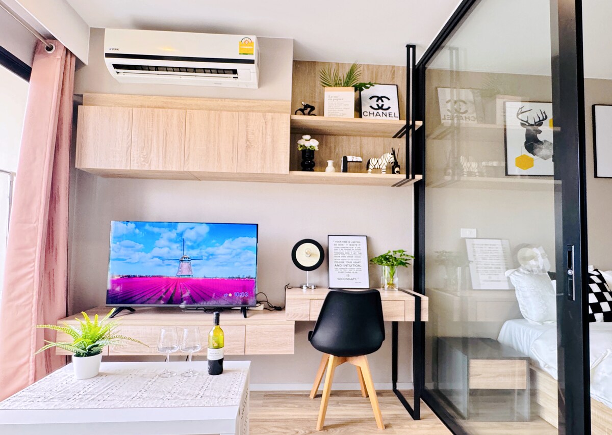 Servicio de departamento en Samuth Prakan - BTS - Estación Pu Chao 5.8 km - Aeropuerto de Suvarnabhumi a 42 km. - Cerca de una tienda de comestibles. - Estacionamiento gratuito. - Wifi gratuito - Cargador para coches eléctricos - lavadoras - pago sin efectivo - Se proporciona servicio de limpieza cada 3 días. - La ropa de cama se cambia cada 7 días.