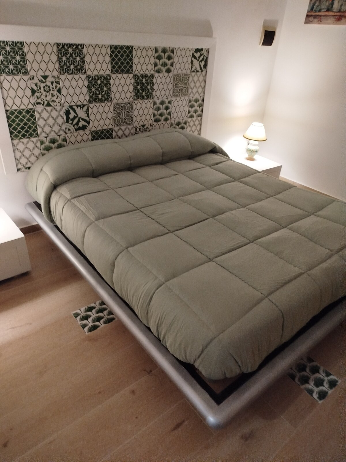 L' appartamento è una piccola villetta immersa nel verde ubicata in una zona residenziale della città. Si sviluppa su due livelli; al piano terra si trova una spaziosa cucina arredata e corredata che si affaccia sul patio di ingresso anch'esso attrezzato con tavolo e poltroncine per pranzare e rilassarsi all'aperto. Al primo piano 1 camera da letto, 1 bagno con ampia doccia ed una camera soggiorno molto ampia con divano letto matrimoniale. Indicata anche per soggiorni lunghi