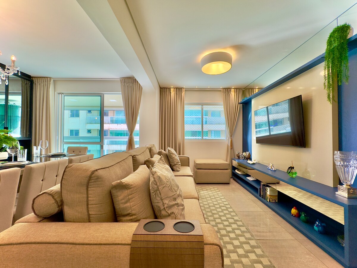 Hermoso apartamento a pie de playa con acceso exclusivo a la playa. Ofrece comodidad para hasta 5 personas, totalmente equipado con un estilo moderno y único. Gran ambiente familiar con muchas opciones de ocio: Piscina infinita y jacuzzi Piscina infantil Bar húmedo Piscina termal Solarium Sala de juegos Sauna Estudio de Fitness y Pilates Pistas deportivas Cine Espacio Kids y Playground Espacio Gourmet y Salón de Fiestas Espacio Pet Estacionamiento Acceso al Parque Beto Carrero en 15 min. Se admiten mascotas