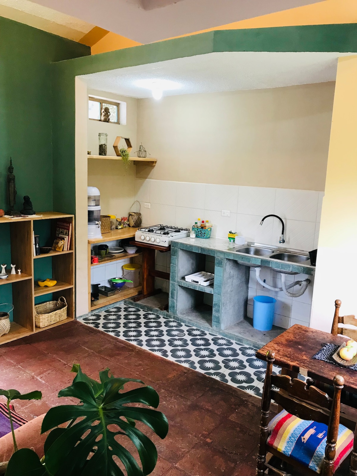 Take a break and unwind at this cozy casita in an emerging food forest. Just a short walk from downtown Cotacachi, this casita offers wonderful views of Imbabura volcano. It sits in a walled in compound in the outskirts of town, next to its twin sister, Casita Imbabura, amongst flowers and trees that attract countless birds, including hummingbirds, butterflies, honey bees, etc. Our casita is also ecofriendly. We collect rain water for the watering of our extensive gardens. Come and visit.