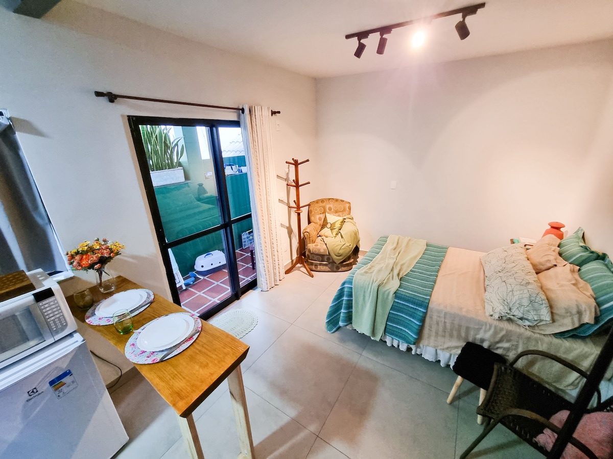 Ofrecemos un estudio/habitación completo para que se sienta cómodo, con privacidad, seguridad y la estructura necesaria para su alojamiento. Con baño privado, cocina completa y toda la asistencia para que disfrute de la experiencia de estar en un lugar familiar y acogedor.