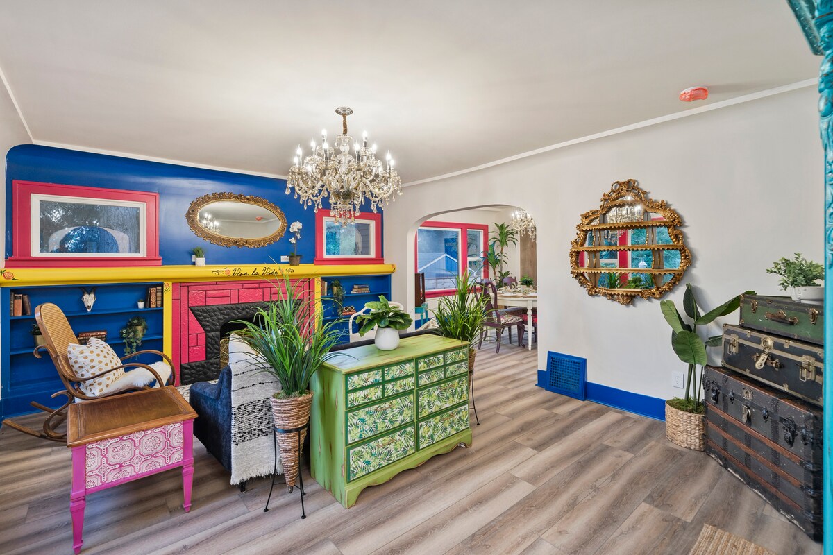 Sumérgete en el vibrante encanto inspirado en Frida Kahlo en esta casa victoriana renovada de 1900 en el distrito histórico de North Slope de Tacoma. A solo 5 minutos en coche de UPS, Ruston Way Waterfront Park y Proctor District, donde encontrarás restaurantes, cafeterías y cervecerías, y a 9 minutos en coche de Tacoma Dome y Emerald Queens Casino. ¡No te pierdas el mercado de agricultores los sábados! ¡Se admiten mascotas! Máximo de 50 libras. Hasta 2 perros. $ 100 por mascota. ¡Limpieza a mitad de estancia incluida para estancias más largas!