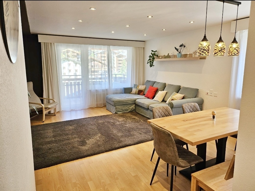 🏡 A 10 minutos de la estación de tren, un hermoso apartamento para un máximo de 6 personas con impresionantes vistas del Matterhorn en 🏔️ el tercer piso. Hay un ascensor disponible. ⬆️ 🎒 Equipaje Puedes guardar tu equipaje en un pequeño pasillo o en la 🗄️ sala de esquí antes y después de tu llegada. El apartamento incluye: 🛋️ Sala de estar + 🍽️ comedor 🛏️ 2 dormitorios 🍳 Cocina 🚿 Baños 🌅 Balcón grande 🚗❌ Zermatt es libre de automóviles️
