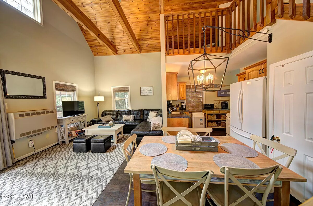 *El alojamiento está instalado dentro de una comunidad cerrada con servicios con una pequeña tarifa diaria * Relájate en este rústico y moderno 2 dormitorios/ 2 baños con un loft completo con servicios. Este acogedor chalet en Poconos lo convierte en el lugar de vacaciones ideal durante esas escapadas de otoño e invierno. Ya sea un día en las pistas o colgado junto a la chimenea o haciendo s'mores en la fogata, ¡te enamorarás de nuestra casa!
