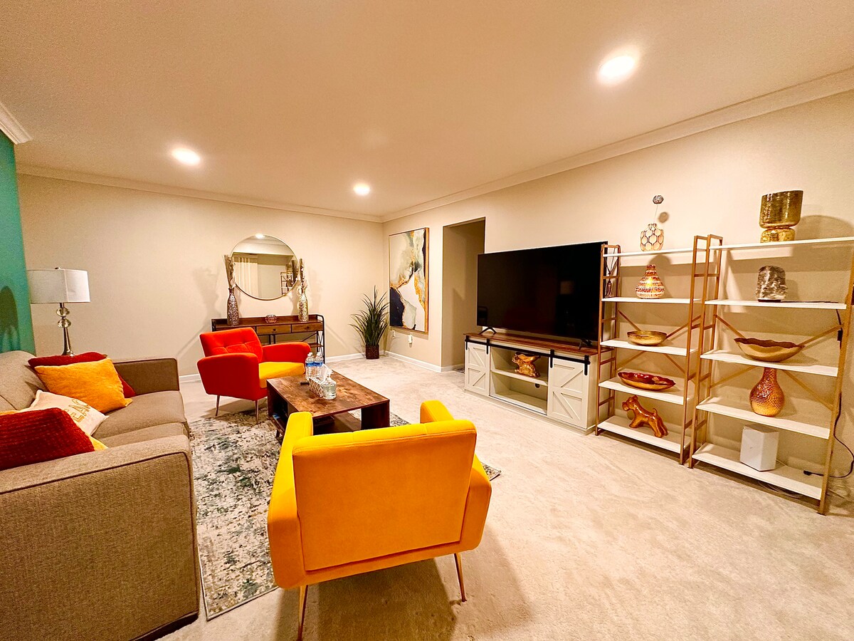 Have fun and relax at this stylish oasis! Packed w/ amenities. Huge Pool w/multiple cabanas, HOT TUB, trampoline, playground, axe throwing, pool/ice hockey table, arcade,huge theater room and outdoor projector too, basketball court, grill, spa/library with sauna and full gym!! 5 comfy beds. Rooms split for privacy. Open kitchen/dining/living room. Cold DeerPark water fountain. Basement apt so there is some movement noise. Updated bath and an outdoor shower. 20 mins from Downtown DC & 6Flags.