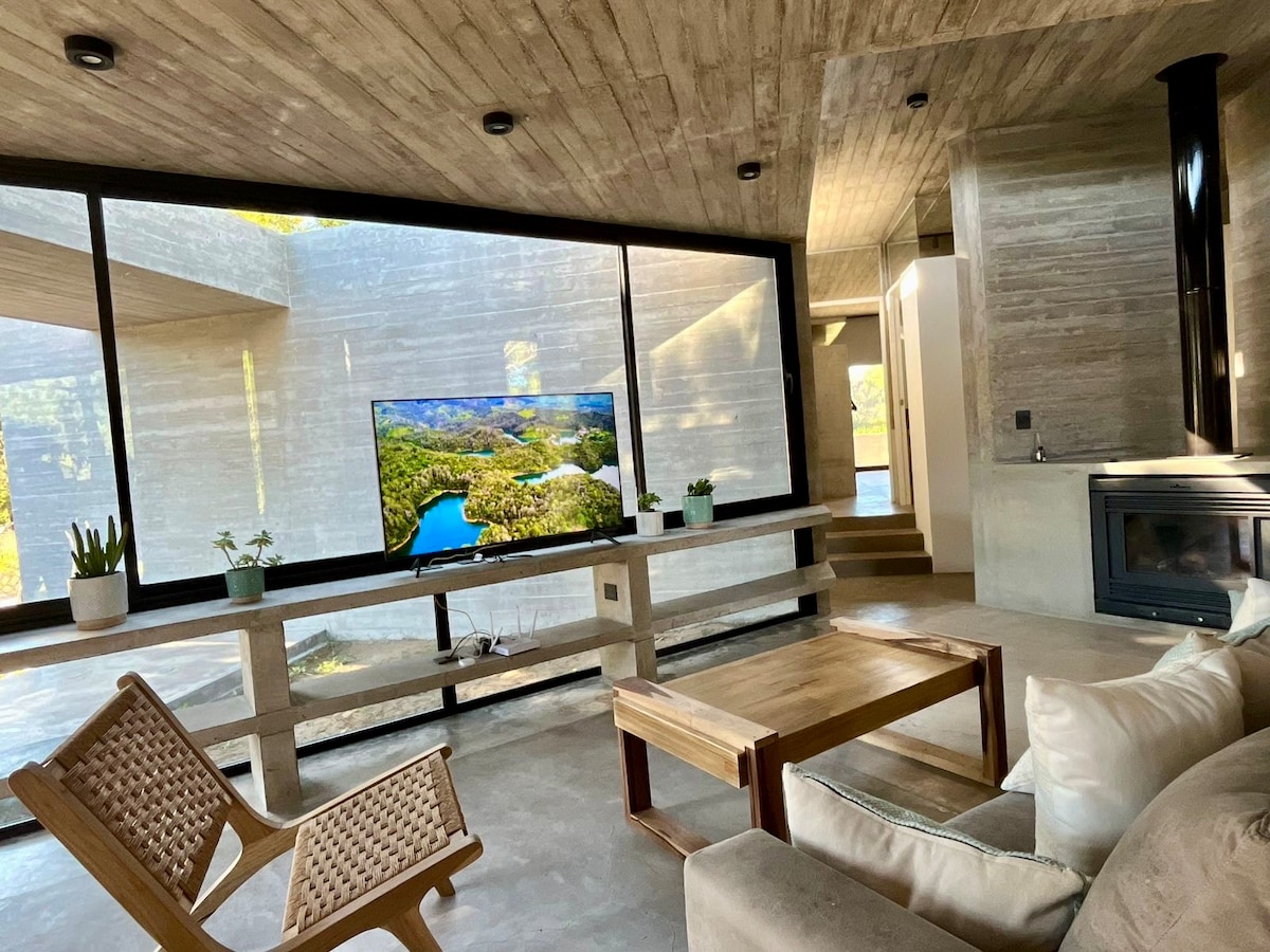 Ubicada en el corazón del bosque, esta moderna y elegante casa de una planta ofrece un refugio único, rodeado de árboles y la tranquilidad de la naturaleza. Con amplios espacios diseñados para disfrutar del entorno, podrás relajarte mientras contemplas increíbles atardeceres y escuchas el sonido de la fauna local. Pensada para disfrutar al máximo del aire libre, con una extensa galería semicubierta, piscina, parrilla y fogonero, donde podrás compartir momentos inolvidables con familia o amigos.