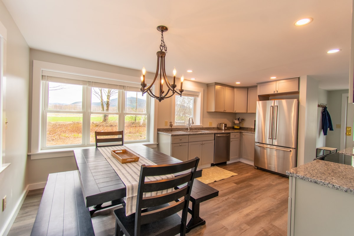 ¡Te damos la bienvenida a nuestro chalet con vistas a la montaña! ¡Con una hermosa vista a la montaña, esta casa tiene una ubicación céntrica cerca de las atracciones de la zona! Mountain View Grand Resort está justo al final de la calle. Bretton Woods y Cannon están a poca distancia en coche. ¡Rutas de senderismo, lagos, esquí y senderos para motos de nieve, todo cerca! ¡Cerca de Littleton, Bethlehem y Lancaster! Disfruta del patio trasero ajardinado con chimenea y pantalla en el patio. Quédate dentro y disfruta de las vistas desde el invernadero o acurrúcate en el sofá de la acogedora sala de estar con estufa de leña.