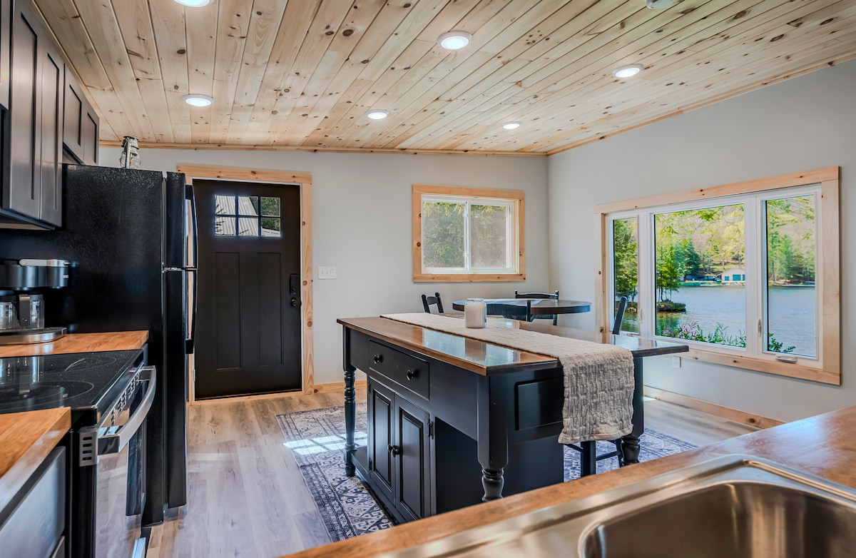 Disfruta de la tranquilidad de la naturaleza cuando te hospedes en esta casa alpina limpia y moderna con capacidad para 6 personas. ¡Se admiten mascotas y se remodela para la escapada romántica perfecta o diversión para toda la familia! Con 120 pies de acceso seguro frente al lago y vistas, una chimenea interior y dos al aire libre y muchas sillas Adirondacks para todos. Este marco A ofrece wifi de alta velocidad y streaming. A 15 minutos de restaurantes, campo de golf, esquí, motos de nieve, rutas de senderismo y ciclismo, festivales de música en verano.