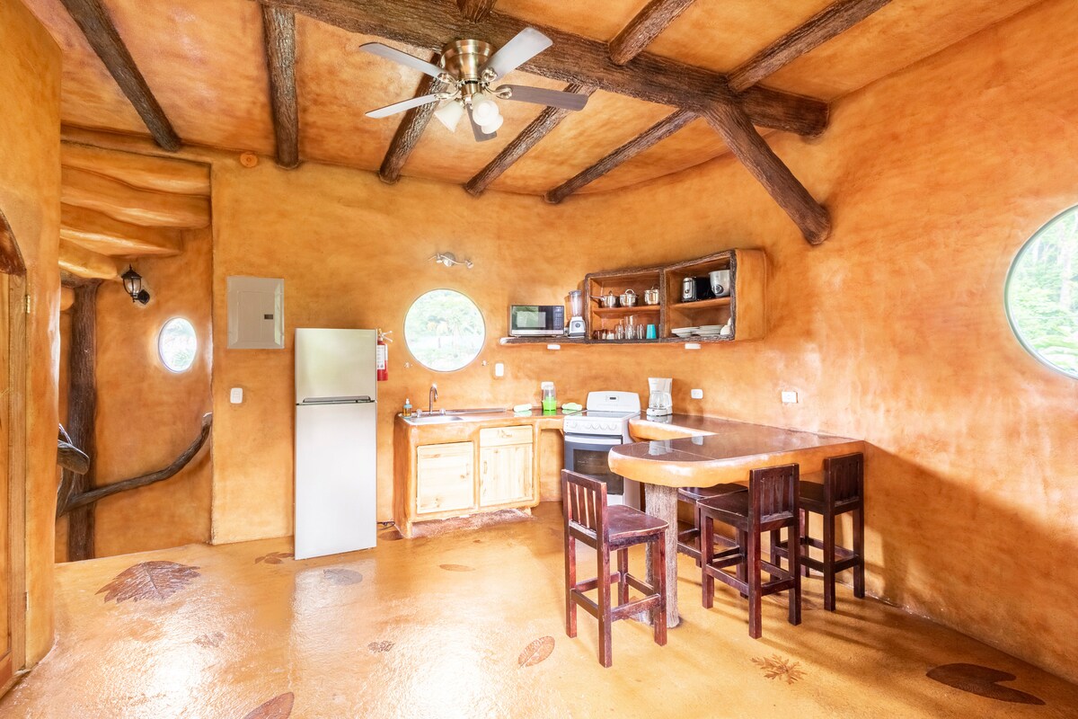 The Tree House is hand-crafted, one of 3 casitas and 3 treehouses at the Bio Thermales natural resort organically integrated into our 35 acre rainforest. Guests enjoy free access, from 9 am to 10 pm to the 15 natural hot and cool springs pools of various temperatures and rainforest trails. No children under 7 years of age for safety reasons The ground floor houses we have are suitable for coming with children of any age and people with mobility difficulties.