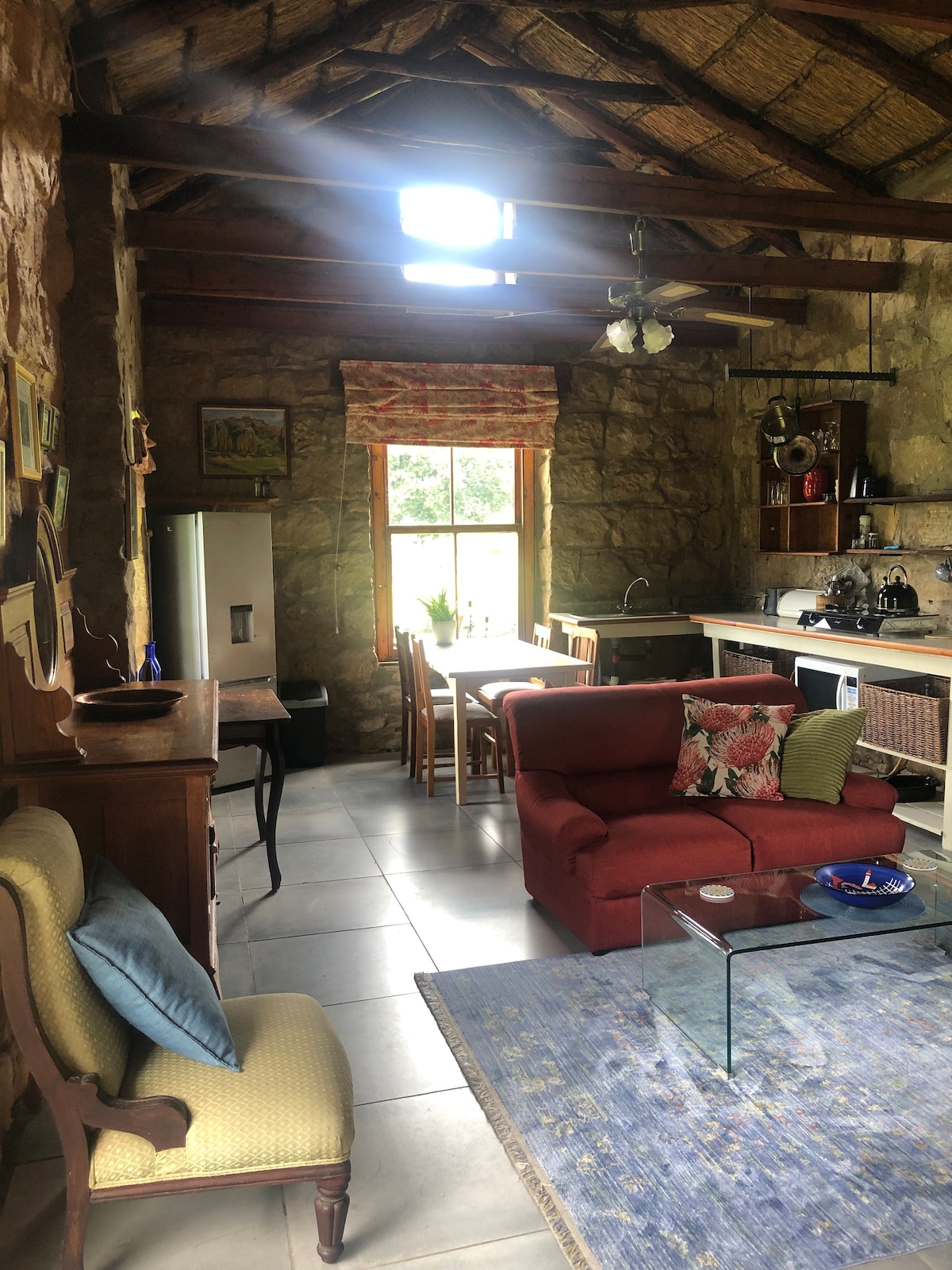 The Stables, is a basic and rustic self-catering cottage situated on Franshoek Farm, in the Witterberg Mountains, near Ficksburg. The cottage is located on the sandstone bluff, over-looking a magnificent view of the Valley. As farm stay guests, you enjoy a fully equipped self-catering kitchen which enjoins a central living space with a fireplace. There is a braai and central firepit. Please be advised that the 2 rooms are seperated and not conjoined in the 1 unit.