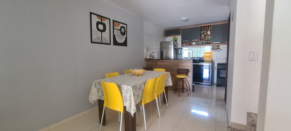 Casa amueblada, ubicada en un condominio cerrado, con seguridad privada las 24 horas, a 5 minutos de la playa. Cuenta con 1 suite y 3 habitaciones, sala de estar y cocina grande, así como un área de servicio amplia. Zona de piscina con quiosco, parrilla y congelador, y mesas con sombrillas. Tres dormitorios con aire acondicionado, un dormitorio con ventilador de techo, Internet Wi-Fi. El condominio cuenta con un muelle con acceso al río Capivara, un parque infantil y una cancha polideportiva. El consumo de energía es adicional. Reserve a partir de 2 noches.