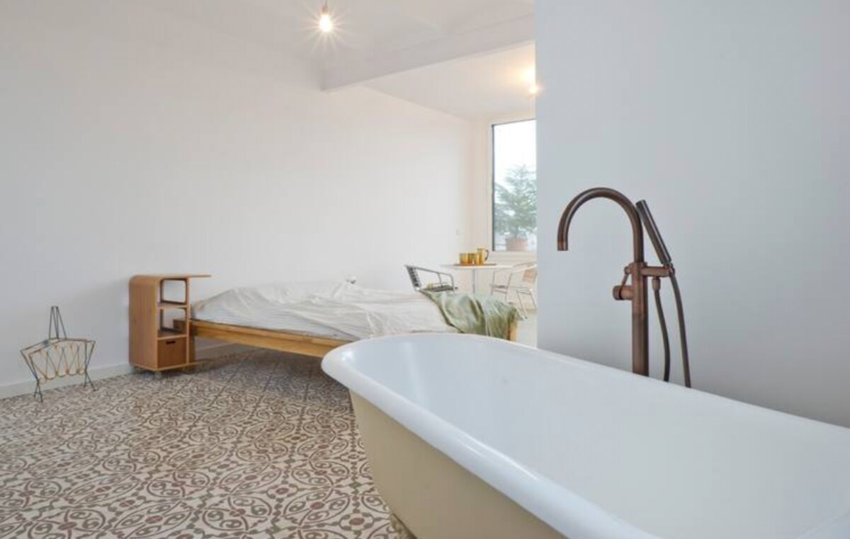 Medblau : Atico Duplex en antigua nave restaurada, totalmente nuevo. Acabados de calidad para garantizar una experiencia única. En la terraza encontrareis un spa-jacuzzi con agua caliente.En el garage podréis dejar bicis, patinetes u otros con total seguridad ya que gestionamos todo el bloque. Dispone de todos los servicios : climatización, domótica, estufa nórdica, lavadora-secadora, etc ... Estación de cercanías a 50 metros (1€, 18 min a centro de Barcelona!)