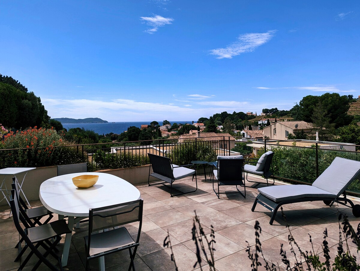 Magnífico estudio amueblado para turistas, situado en Carqueiranne (a 10 km del aeropuerto y de la estación de tren de Hyères les Palmiers) adyacente a una villa en una zona residencial muy tranquila, cerca del mar. Acceso independiente, estancia con vistas a una hermosa piscina . A 5 min a pie de la playa y del pequeño puerto deportivo de Carqueiranne. Una vez que el coche está estacionado, todo está a poca distancia;-)