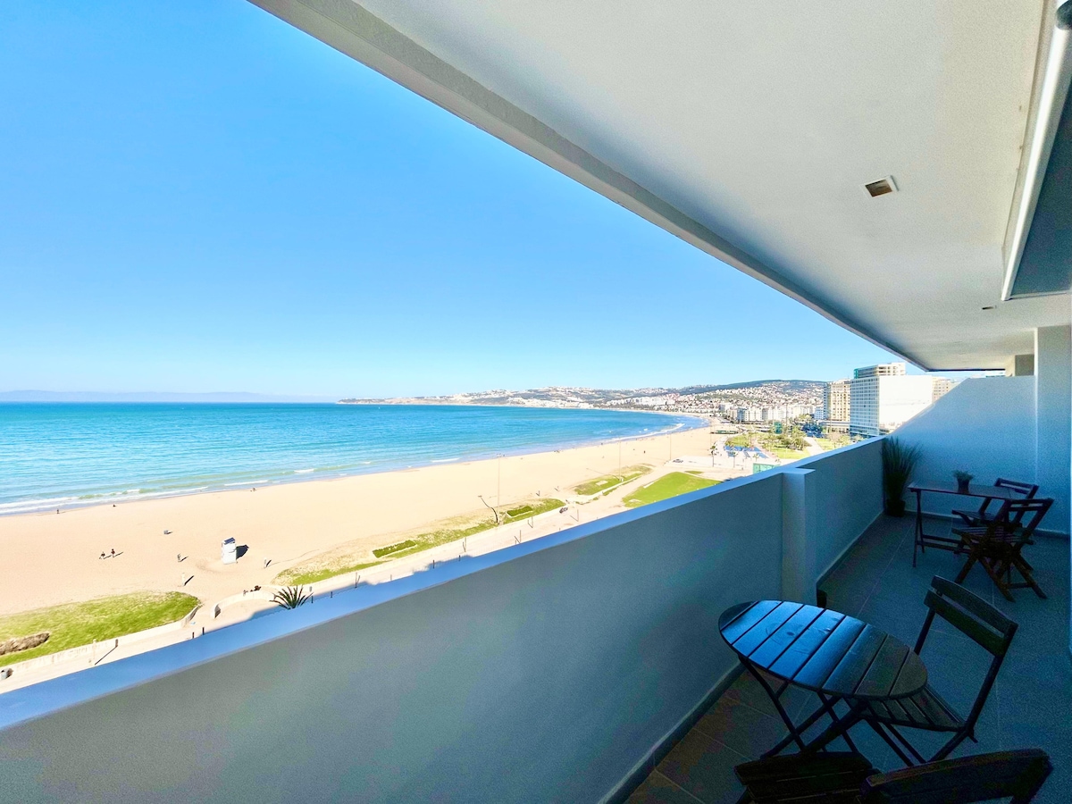¡La mejor ubicación de TÁNGER! Playa justo enfrente con un gran balcón con vistas parciales al mar. La mejor ubicación de Tánger. Televisión por satélite-WiFi Fibra, Netflix, Iptv.Todo es accesible a pie puerto deportivo,casco antiguo,Macdonald, pubs,cafés.... Los viajeros con coche tendrán una plaza de aparcamiento gratuita en el garaje de la residencia con acceso directo al apartamento.Seguridad 24h/24 . Sea mi viajero. * Antes de reservar, lea atentamente mi descripción GRACIAS🙏🙏