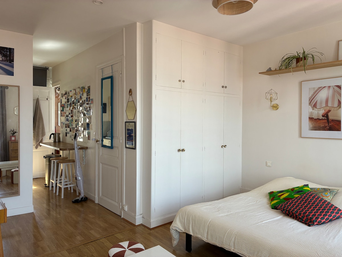 Sumérgete en la vida parisina alojándote en mi encantador departamento de 1 dormitorio. A solo 1 minuto del metro y a 10 minutos de Montparnasse, el apartamento está idealmente ubicado en una encantadora calle comercial. Garaje disponible. Tranquilo, bellamente decorado, con un vestidor separado y servicios de calidad, proporciona una comodidad óptima para una estancia de placer o de negocios. ¡Disfruta de París como un habitante más, con todo al alcance de tu mano! Te damos la bienvenida a la casa de Eva. Tu escapada parisina te espera.