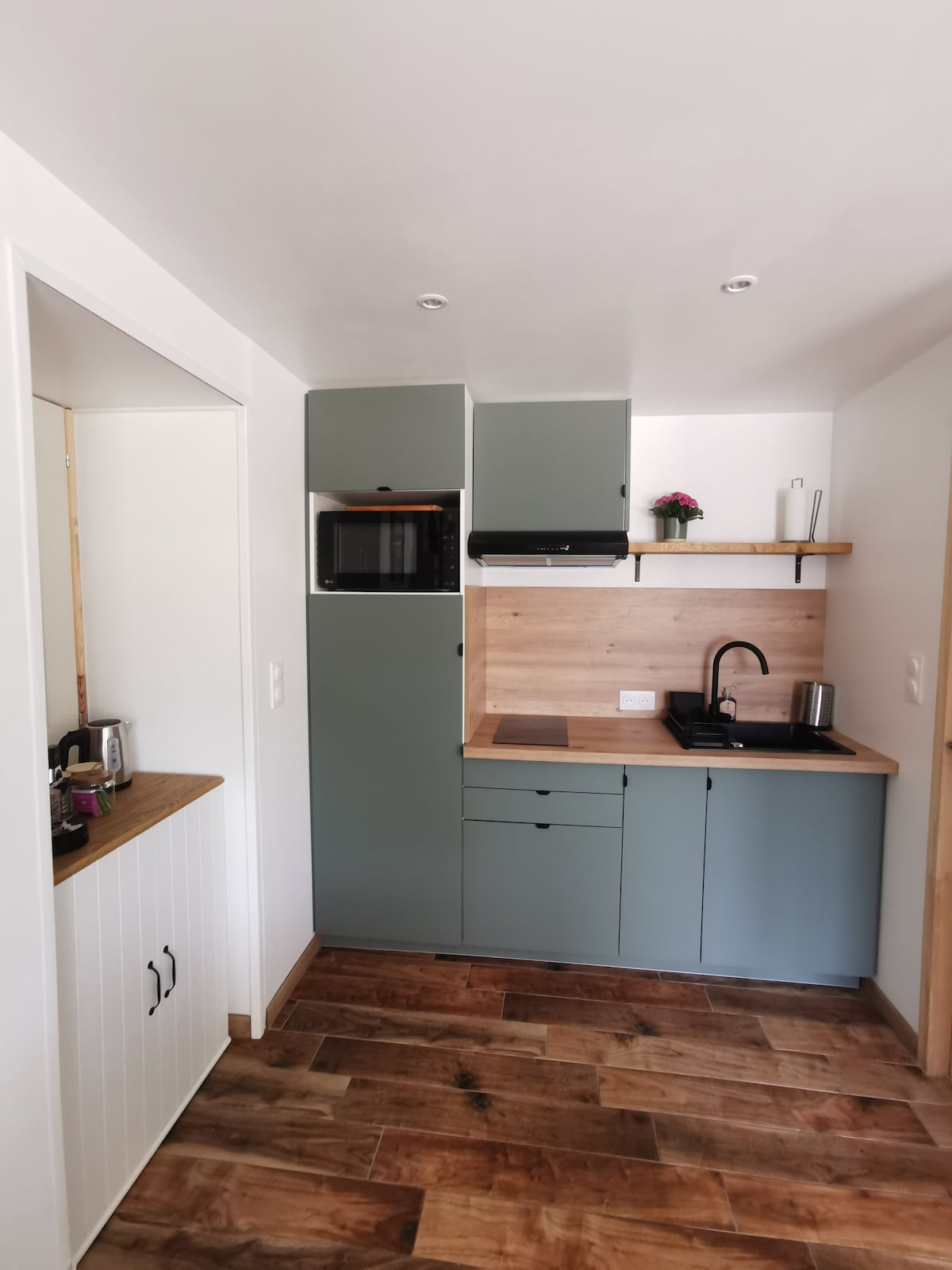 La casa es una antigua granja donde se hacia la sidra, totalmente reformada en 36m2 en planta con un altillo flotante. El alojamiento es independiente y ofrece todas las comodidades modernas de una vivienda actual con todo el equipamiento útil. El parque privado de más de 5000m2 es accesible para los invitados que también pueden ir a visitar las cabras y ovejas en su recinto.