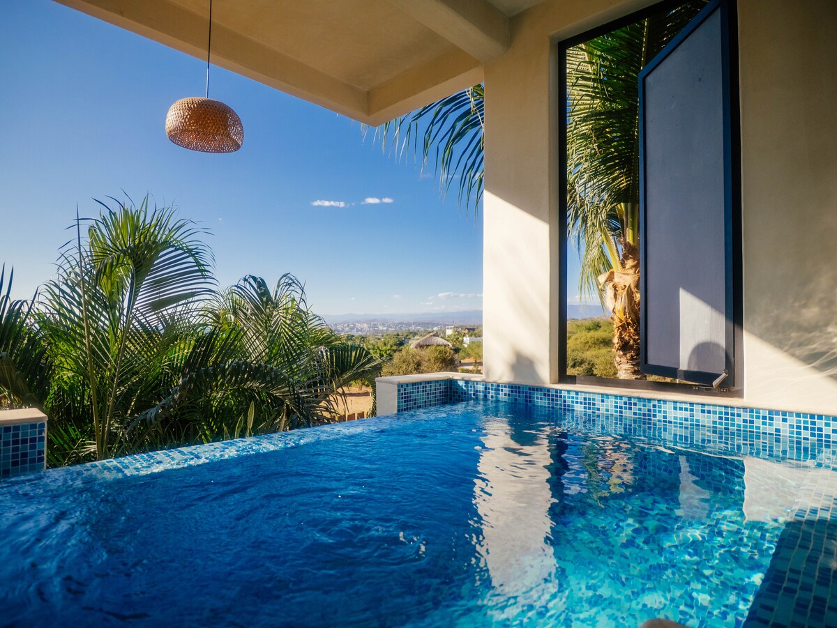Amazing ocean front suite overlooking the beautiful swimming and surfing bay of Carrizalillo with private dip pool, WiFi STARLINK internet A/C, fully equipped kitchen and large living space and TV with Netflix.The suite is a short 5 minute walk to Carrizalillo beach where you can enjoy surfing, swimming and snorkeling. We are also a short 5 minute walk to the Rinconada area where you can enjoy many fine restaurants, coffee shops, laundry services and shopping.