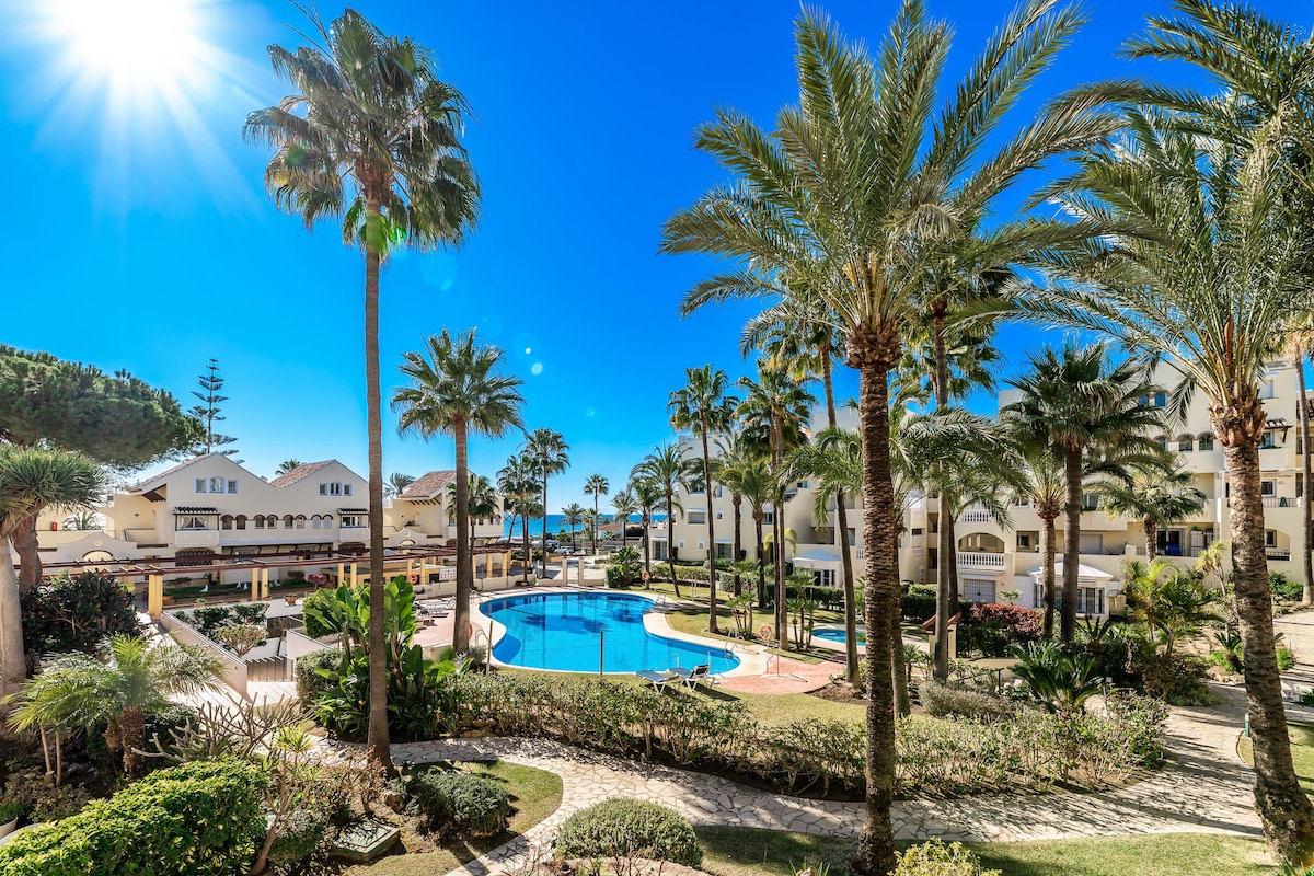 Villa Marbella frente a la playa, 2 dormitorios, piscina con jardín