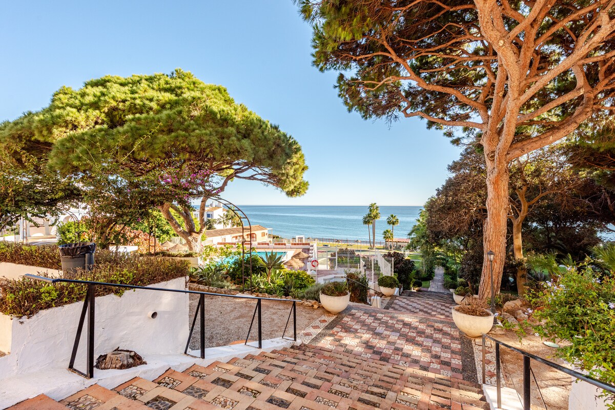 Cozy, bright, entirely renovated quality flat on the front line with sea views from the sunny and large balcony, both rooms and the bathroom. Features his and her shower, full kitchen, 2 tennis courts, 2 swimming pools (1 for children) large gardens, private beach area, free beach beds and private parking. We have a sandy beach with Blue Flag status and direct access to the sea boardwalk. Near Marbella and La Cala with 75+ restaurants and many shops walking distance. Strict cleaning protocols.
