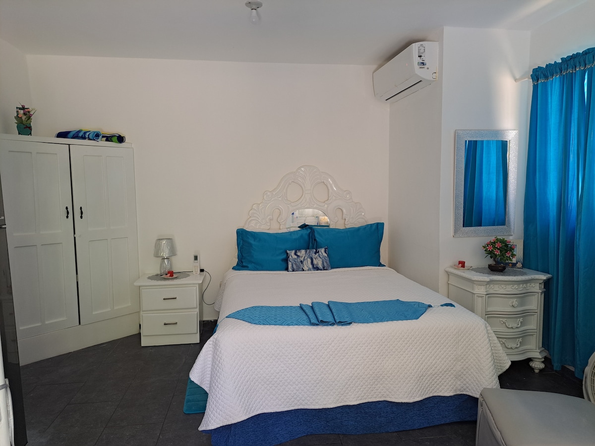 Disfruta de nuestra escapada para dos, a solo 50 metros de la playa y 5 minutos de la ciudad. El apartamento cuenta con 1 habitación, 1 cama queen size, 1 baño amplio y una cocina bien equipada. Todos los servicios básicos están incluidos, ¡sin cargos extra! Escríbeme para cualquier pregunta. ¡Te esperamos!