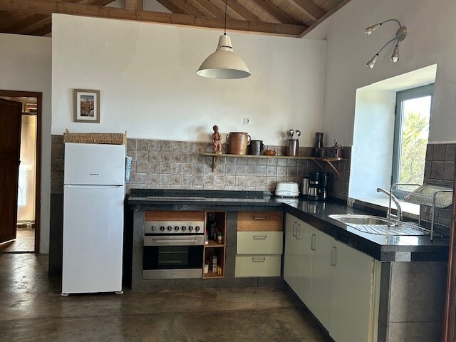Relájate con vistas espectaculares, desayuna en las terrazas, toma el sol en las tumbonas que conectan con la naturaleza mientras disfrutas de la canción de los pájaros y vive noches románticas contemplando las estrellas. El estudio renovado tiene una cómoda cama, cocina, área privada al aire libre, wifi y estacionamiento gratuito a solo unos pasos de la casa. ¡Disfruta de la granja de frutas *, toma algunas frutas y sé feliz! En una zona rural tranquila, es accesible en auto desde San Sebastián (20 minutos), la ciudad principal donde llegan todos los ferris.